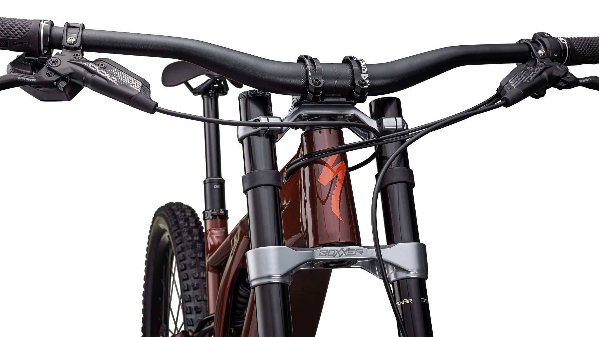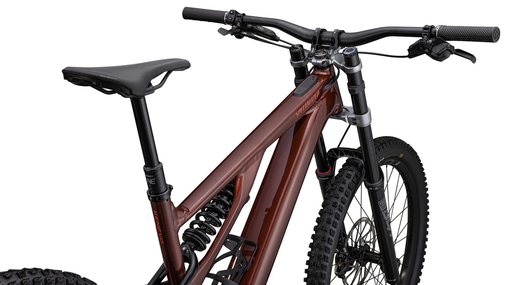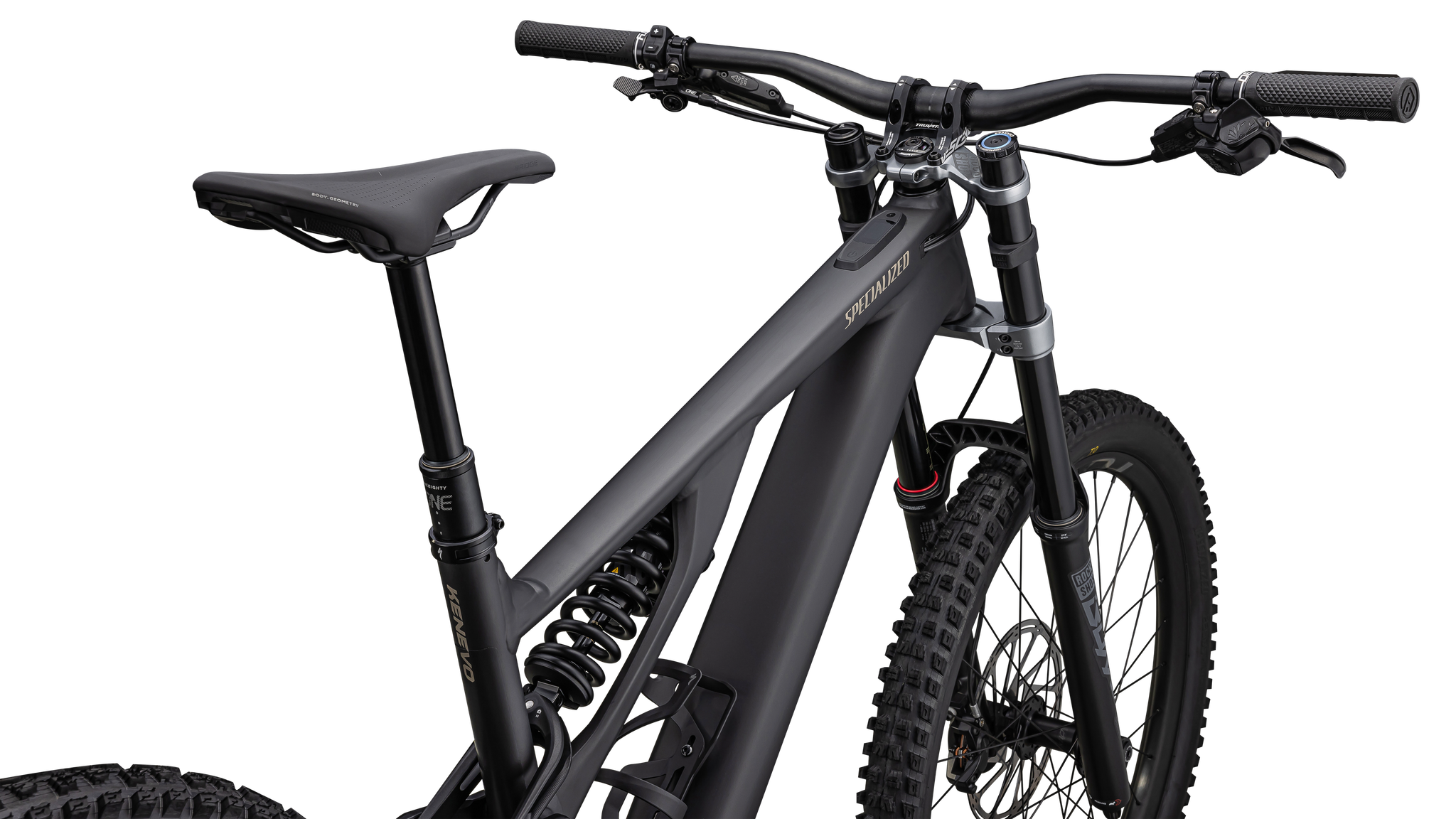 Yes, that a dual-crown fork up front. When we launched the original Kenevo we started seeing riders strapping dual-crown forks on their Levos—it was that rowdy of a bike. So when we set out to design this latest Kenevo, we decided to equip our Expert model with a 180mm-travel RockShox Boxxer. Absolute steering precision and downhill control. Bring it on.