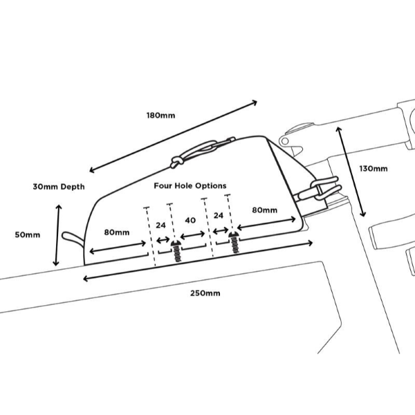 Made from 100% waterproof textured nylon and with a tough YKK zip, it will withstand whatever your ride throws at it. The headset fitting is designed to work with all headsets, including bikes with a low stack height. whilst the sturdy plastic base has reinforced holes to allow it to fix onto the top tube bolt bosses, eliminating the need for straps and keeping the bag secure.